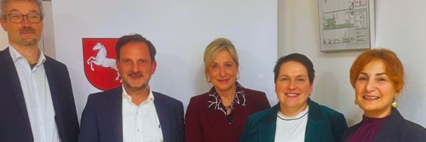 v.l.n.r.: Jan Ceyssens, Joachim Bunk, Landrätin Dagmar Schulz, Ministerin Melanie Walter und Prof. Dr. Ani Melkonyan-Gottschalk